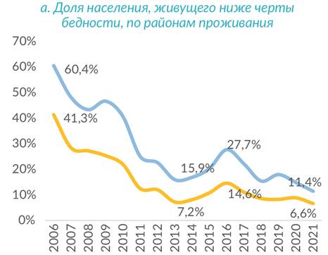 Хроническая бедность — постоянная бедность, не изменяющаяся с течением времени – тоже снизилась на треть: с 8,4 % до 5,3 %.