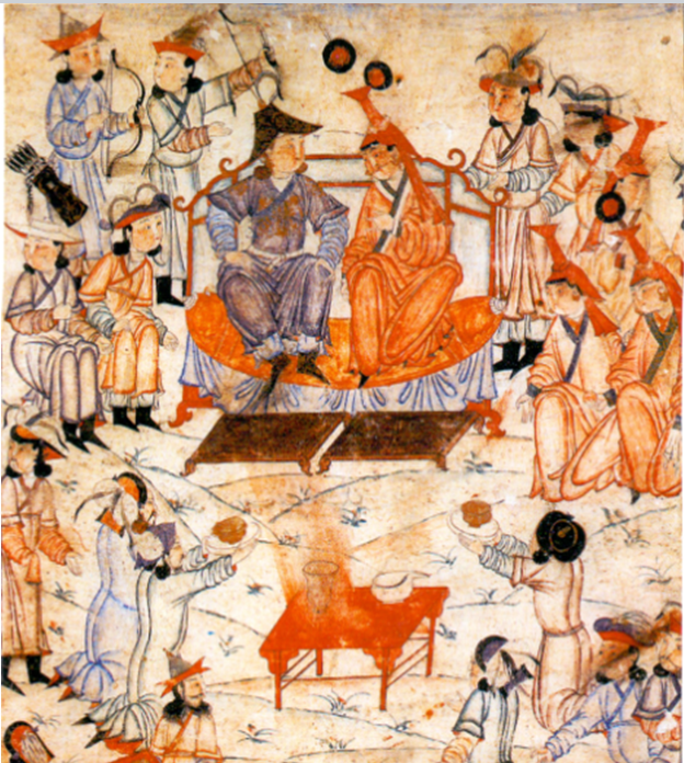 Когда же Чингисхан находился в своей ставке, он занимался государственными делами, сидя на полноценном троне. Больше всего описаний монгольской обстановки можно найти в китайских источниках.