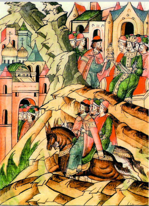 Так старинный летописец изобразил визит князя Ярослава к хану Бату, который находится в правом верхнем углу рисунка.