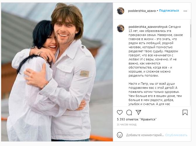 Близкие Анастасии Заворотнюк и Петра Чернышева поздравили их с годовщиной свадьбы - Караван