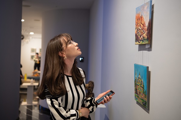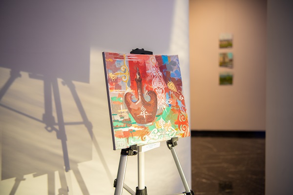 Назым представила сразу три работы в таких техниках, как абстракция, дизайн интерьера и точечная роспись. А Дана Нуршаева через свою картину, посвященную легендарному театру оперы и балета имени Абая в Алматы, выразила дань уважения таким деятелям национального искусства, как Куляш Байсеитова, Шара Жиенкулова, Евгений Брусиловский и др.