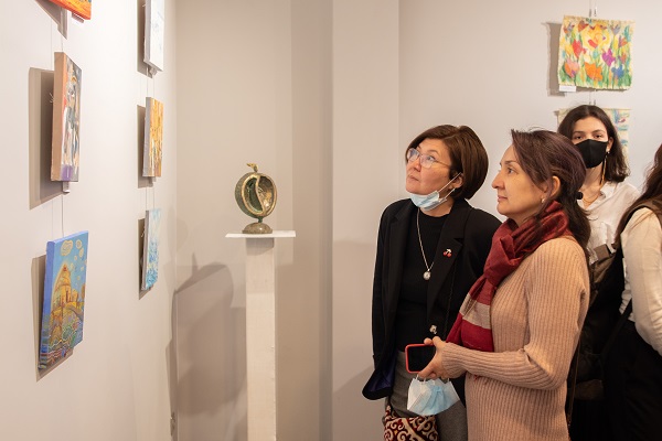 Среди тех, кто выставил свои работы, стипендиаты Фонда Нурсултана Назарбаева 2021/2022 учебного года, Назым Мейрамбек и Дана Нуршаева.
