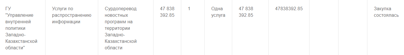47 838 392 тенге на услуги сурдопереводчика новостных программ.