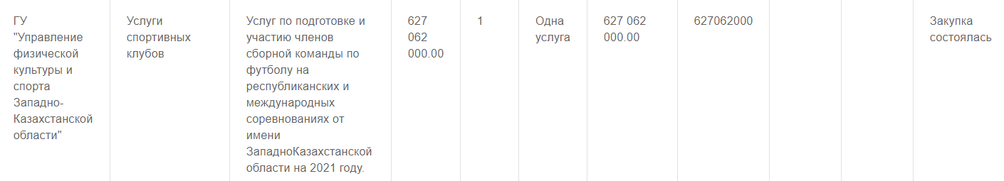 627 062 000 тенге на подготовку сборной команды по футболу на республиканских и международных соревнованиях от имени Западно-Казахстанской области.