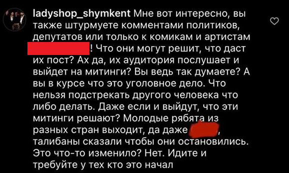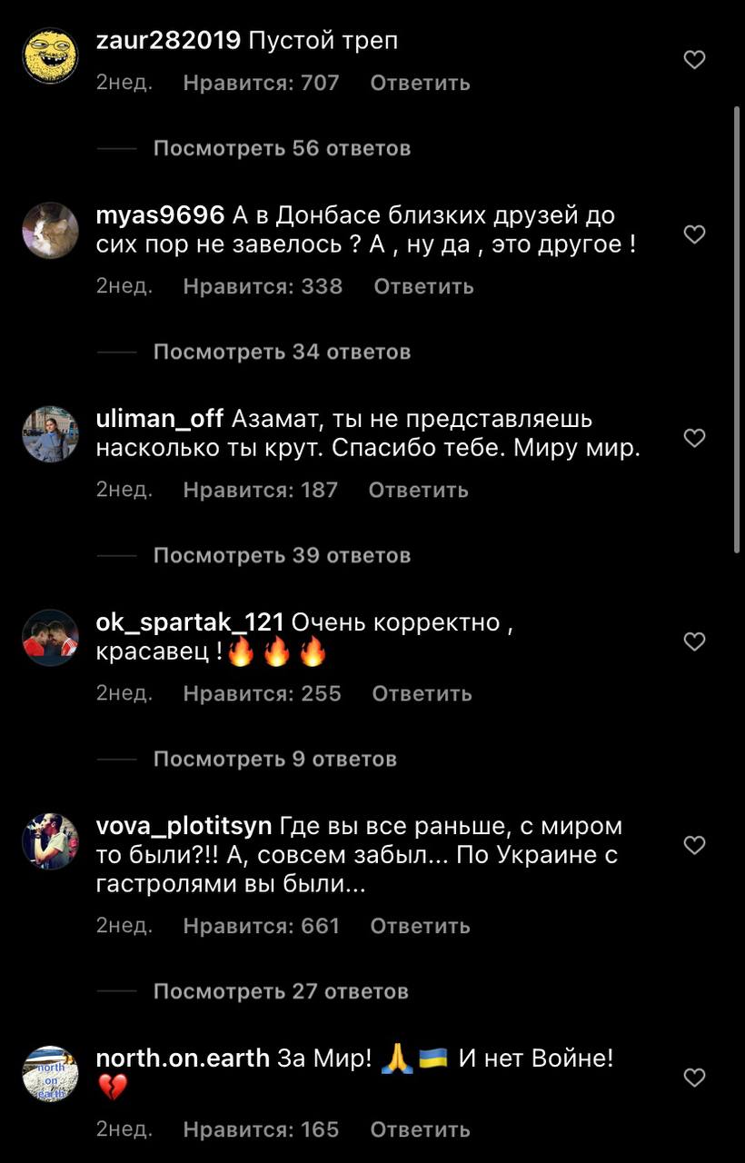 Другой популярный российский комик и шоумен казахского происхождения Азамат Мусагалиев на свой странице обозначил, что он "за мир". Но эта позиция также пришлась не по душе очень многим.
