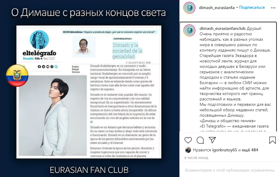 Евразийский фан-клуб Димаша Кудайбергена в Instagram решил рассказать о реакции мировых изданий на творчество и личность нашего талантливого соотечественника, пишет Caravan.kz.