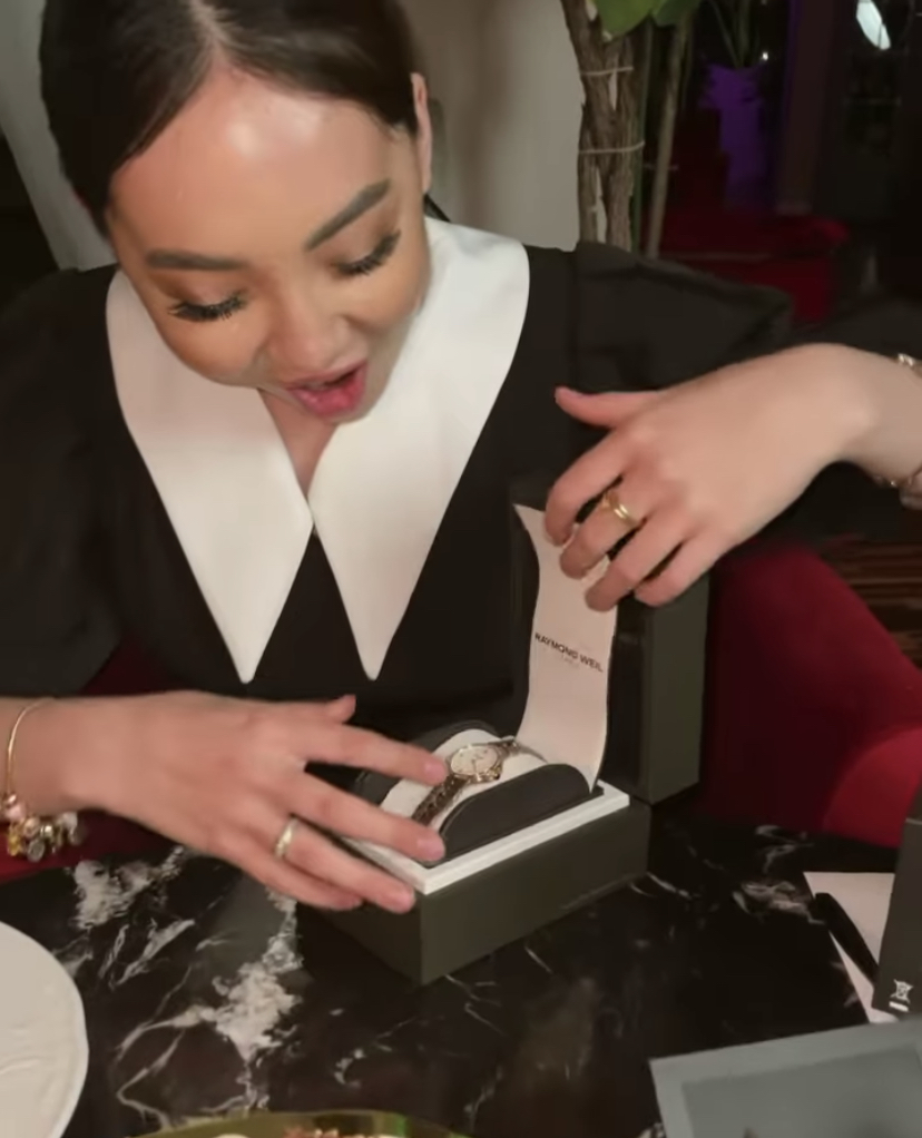 Однако на этом сюрпризы не закончились. Супруг Фаризы пригласил ее в дорогой ресторан и преподнес роскошные швейцарские часы с бриллиантами в качестве подарка. Разумеется, все самые яркие моменты, особенно с дорогими часами, сестренка популярного певца опубликовала в instagram-аккаунте. Некоторые предположили, что она сделала это с целью вызвать зависть у аудитории.