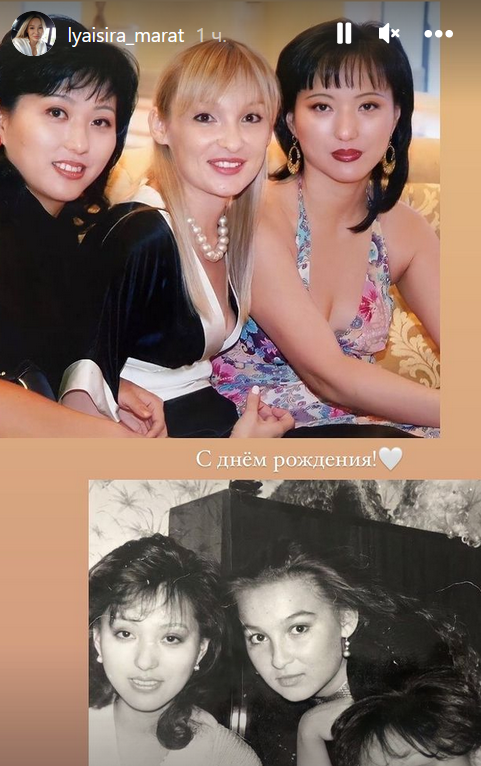 Сегодня она поздравила своих подруг с днем рождения, разместив в своем аккаунте памятные фото с ними, передает медиа-портал Сaravan.kz. На фото можно увидеть и саму Ляйсиру в юности.