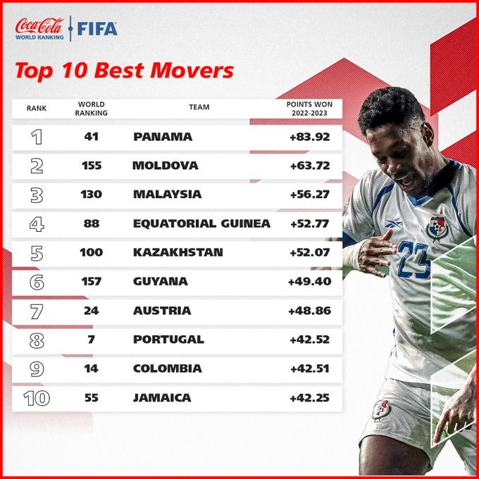 Лидером стала сборная Панамы, которая улучшила свой показатель на 83,92 очка, благодаря чему команда поднялась на 20 позиций в рейтинге ФИФА, закончив год на 41-м месте.