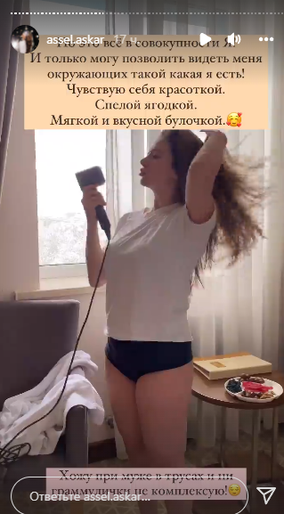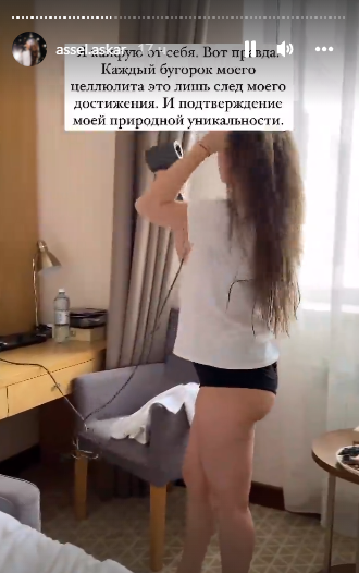 Асель Аскар в сториз в Instagram рассказала о своём отношении к целлюлиту, передает медиа-портал Сaravan.kz.