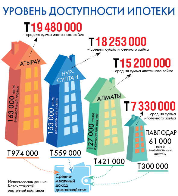 При этом на Алматы и Нур-Султан приходится больше половины всех ипотечных займов. Если подробно рассмотреть жилищные программы, то 64 процента займов были выданы через ЖССБК, 28 процентов – через программы “7-20-25” и “Баспана Хит”. Количество ипотечных займов, которые взяли граждане в 2019 году, составило 1 767 миллиардов тенге. А на строительных площадках страны был бум, который страна не видела последние 10 лет… Интересно, что в отличие от прошлых лет оживилось строительство в регионах. После Алматы и Астаны лидируют Мангистауская и Актюбинская области. Но куда красноречивее будет взглянуть именно на исследования уровня доступности жилья. Ведь все госпрограммы, которые стоили миллиарды, были нацелены именно на то, чтобы улучшить именно этот показатель. Но, увы, в стране по-прежнему жилье недоступно. Самый худший показатель здесь демонстрирует Шымкент, на втором месте идет Алматы. Показатель этот высчитывается с учетом средней рыночной стоимости жилья, средних доходов населения и других важных показателей. Иными словами, цены на жилье никак не соответствуют уровню доходов, значит, что люди покупают жилье, залезая в огромные долги.