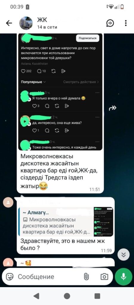 «Мне сегодня в чате соседей нашего ЖК отправили скрин, как меня ищут в Threads. Видимо многие не увидели мой пост о нашей нашумевшей микроволновке. У нас все так же, микроволновка включает свет в подьездах, наш застройщик просто забил на нас. СКАЗАЛИ: ЖИВИТЕ ТАК«, — написала девушка.