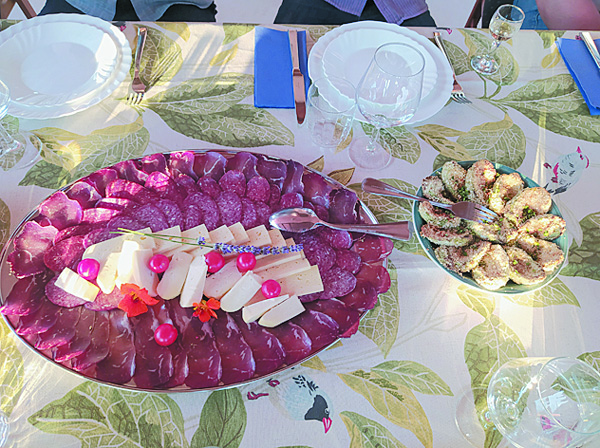 Угостились. Аппетит нагуляли. На первое – мясная нарезка в разных блюдах.