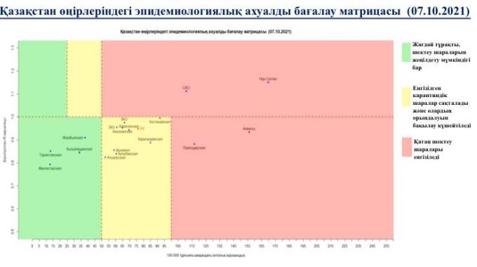 Матрица оценки эпидемиологической ситуации в регионах Казахстана на 7 октября 2021 года: