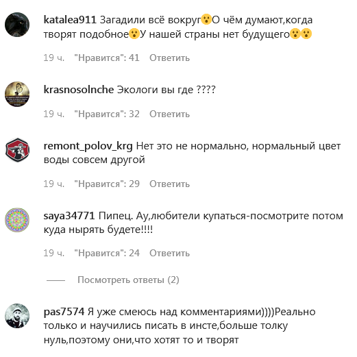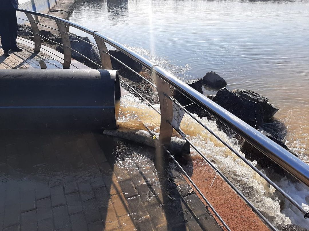 На видео и фото заметна струя коричневой воды, которая бьет из трубы и контрастирует с голубым прудом. Многие карагандинцы подумали, что это сточные воды или другое загрязнение.