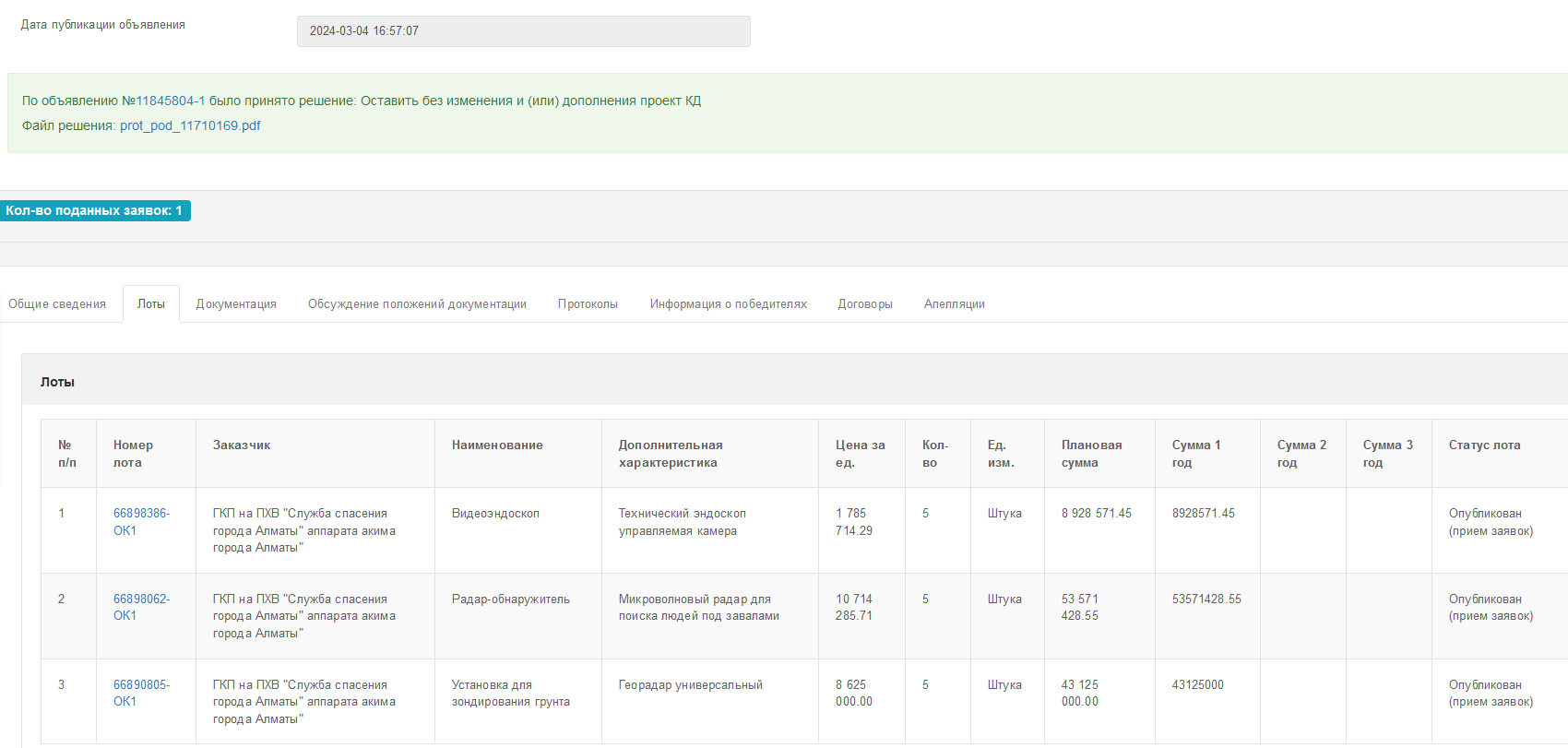 Отдельный вопрос вызывает февральское объявление. Почти 95 тыс. тенге было выделено на фильтр сетевой помехоподавляющий, еще более 11 тыс. – на генератор шумовых помех и 129 тыс. – на постановщик помех. Такое оборудование в Казахстане обычно используют возле тюремных учреждений, так как отбывающим срок заключения гражданам запрещено общение по мобильной связи. Но зачем эти приборы службе спасения? Непонятно.