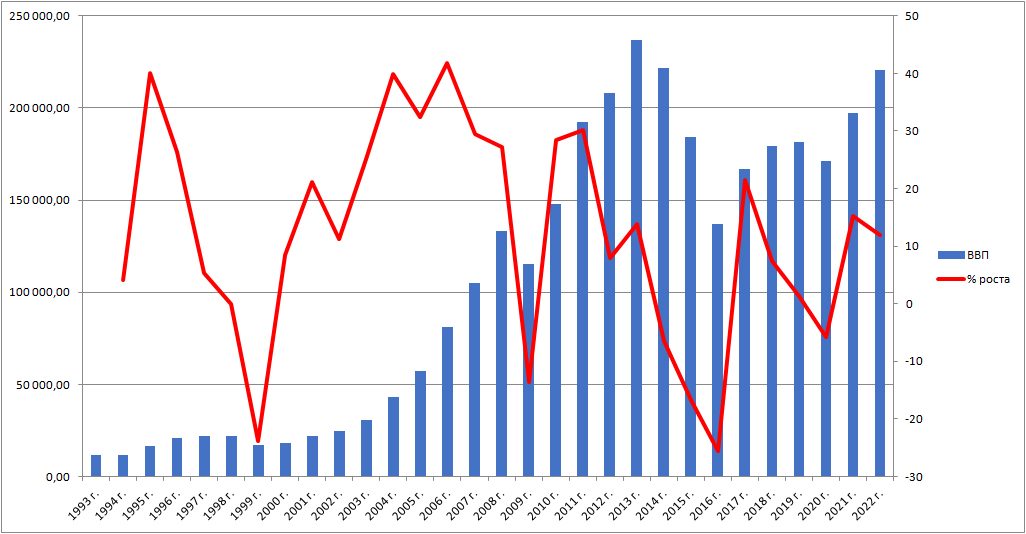 У Казахстана тоже были свои успехи: c 1994 по 1997 год мы росли по 10 % в год. Благодаря этому экономика выросла в два раза буквально за 5 лет!