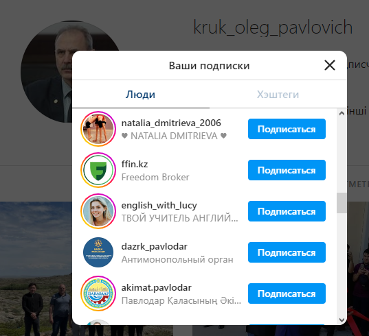 Также в подписчиках у Олега Павловича в Instagram можно найти некоего Павла Крука, у которого нет ни фотографии, ни публикаций, а подписан он как "absolemus" — возможно, фанат "Алисы в стране чудес". В Казахстане есть один переводчик-фрилансер по имени Павел Крук: