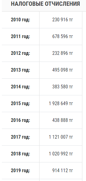 Зато налоговых отчислений с каждый годом всё больше: если в 2010 году это было около 230 тыс. тенге, то за 2022 год сумма выросла до 4,2 млн тенге. Видимо, в последние годы финансовые поступления в организацию значительно выросли: