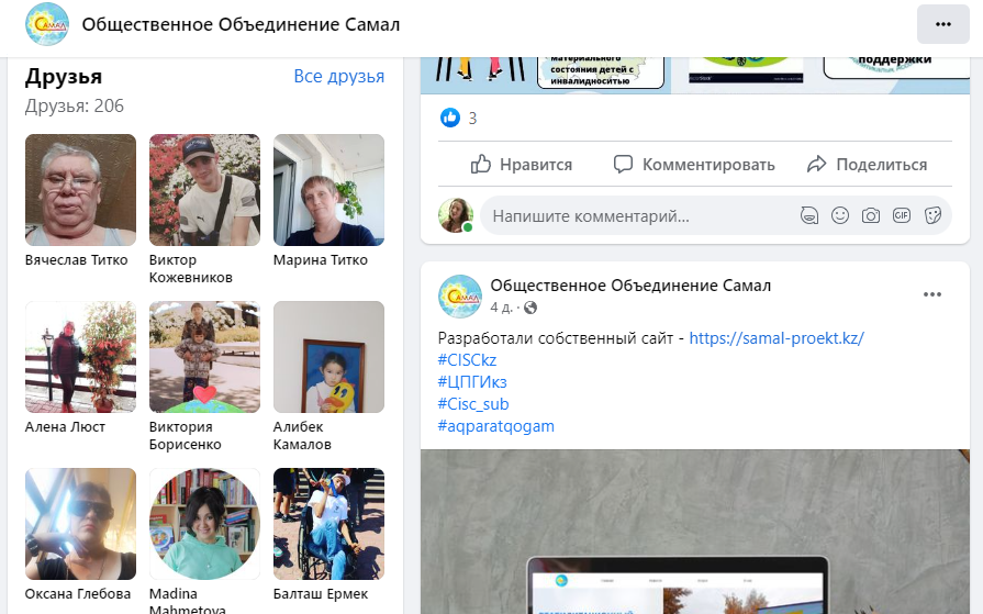 К слову, указано, что девушка работает в общественном объединении инвалидов "Реабилитационный центр "Самал". Правда, несмотря на то, что организация существует более двадцати шести лет, поддержка в социальных сетях у них пока слабая. Пустая страница в Instagram и не очень раскрученная страница Facebook, откуда можно узнать, что сайт у них появился только недавно: