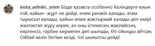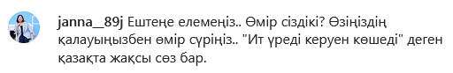 "Мнение окружающих… Неужели мы единственный народ на земле, который живет для других людей? Разве американцы, китайцы, корейцы беспокоятся о том, что скажут соседи или почувствует младший брат друзей сватов?" — написала Жулдыз.