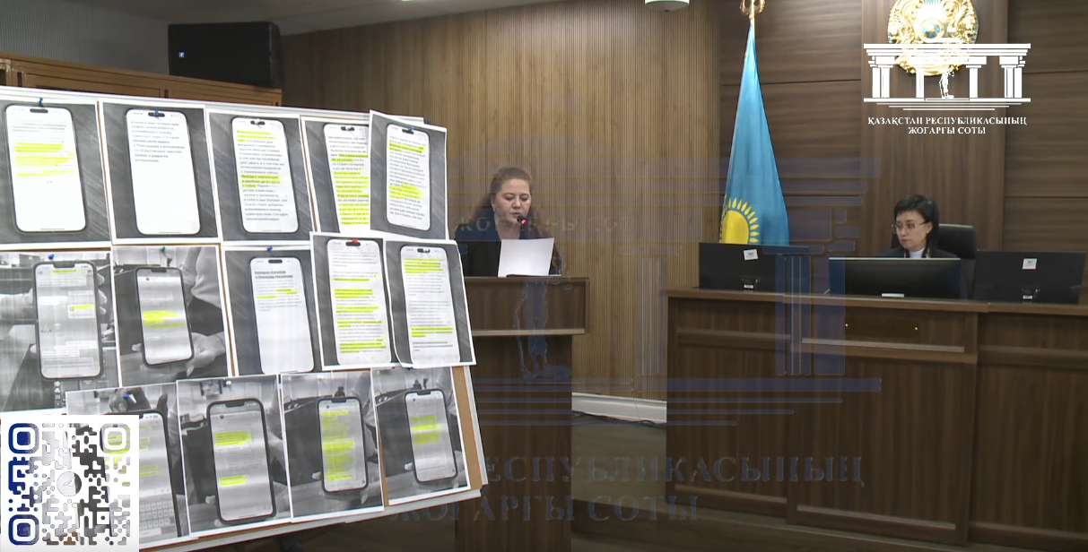 С разрешения суда она развесила на доске скриншоты некоторых сообщений из переписки Салтанат Нукеновой, передает Caravan.kz. При этом судья позже сделала Рамазановой замечание и сказала, чтобы она не цитировала переписку дословно, а анализировала ее и не повторялась.