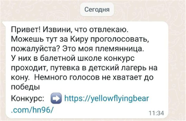"Мою страницу в ВК взломали. Я обнаружила, что не могу зайти в аккаунт и что моя страница была заблокирована. Мне прислали сообщение примерно с таким содержанием: "Добрый день, уважаемая Вероника, вас приветствуют мошенники, в переписке с Олегом мы обнаружили много интересных фото. С вами свяжутся по вашему номеру в WhatsApp, чтобы обсудить, что нужно сделать, чтобы эти фото не были разосланы всем, кто у вас в друзьях". И прикрепили моё интимное фото. Ещё он писал от моего имени кому-то, что моя страница взломана и что с нами ведутся переговоры.