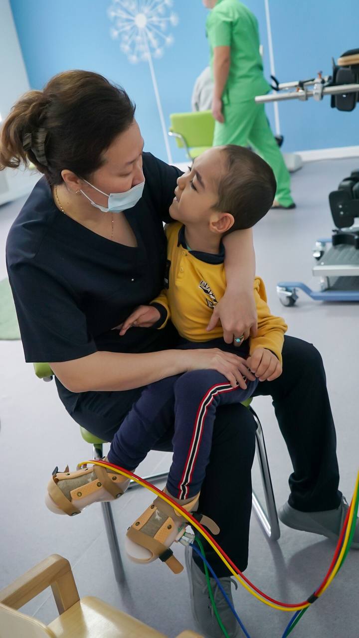 В реабилитационном центре бесплатно оказывается комплексная реабилитация, включающая более 30 услуг: лечебную физкультуру (кинезотерапию), занятия логопедов, дефектологов, психологов, эрготерапевтов, физиолечение и другие. С этой целью Фонд Нурсултана Назарбаева обеспечил переподготовку и повышение квалификации 29 специалистов реабилитационного центра. Планируется дальнейшее обучение сотрудников зарубежными менторами по актуальным вопросам в области реабилитологии. Ежегодно центр будет принимать 600 детей с нейро-ортопедическими заболеваниями, в том числе с церебральным параличом.