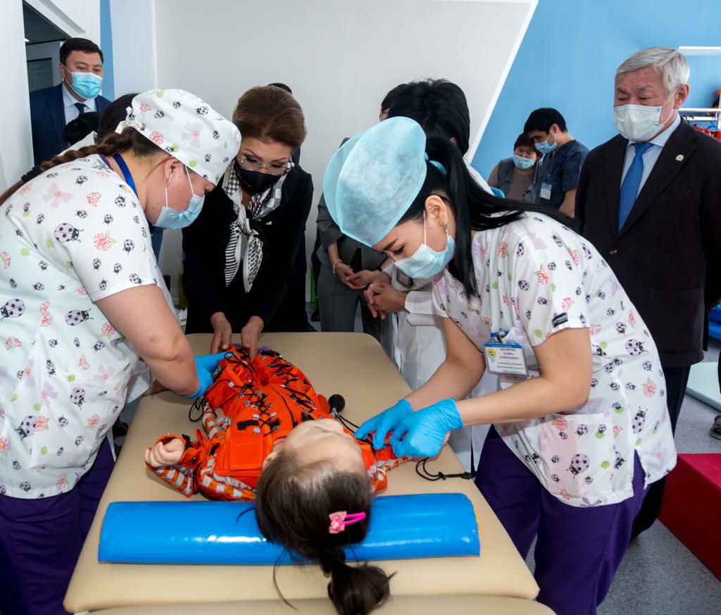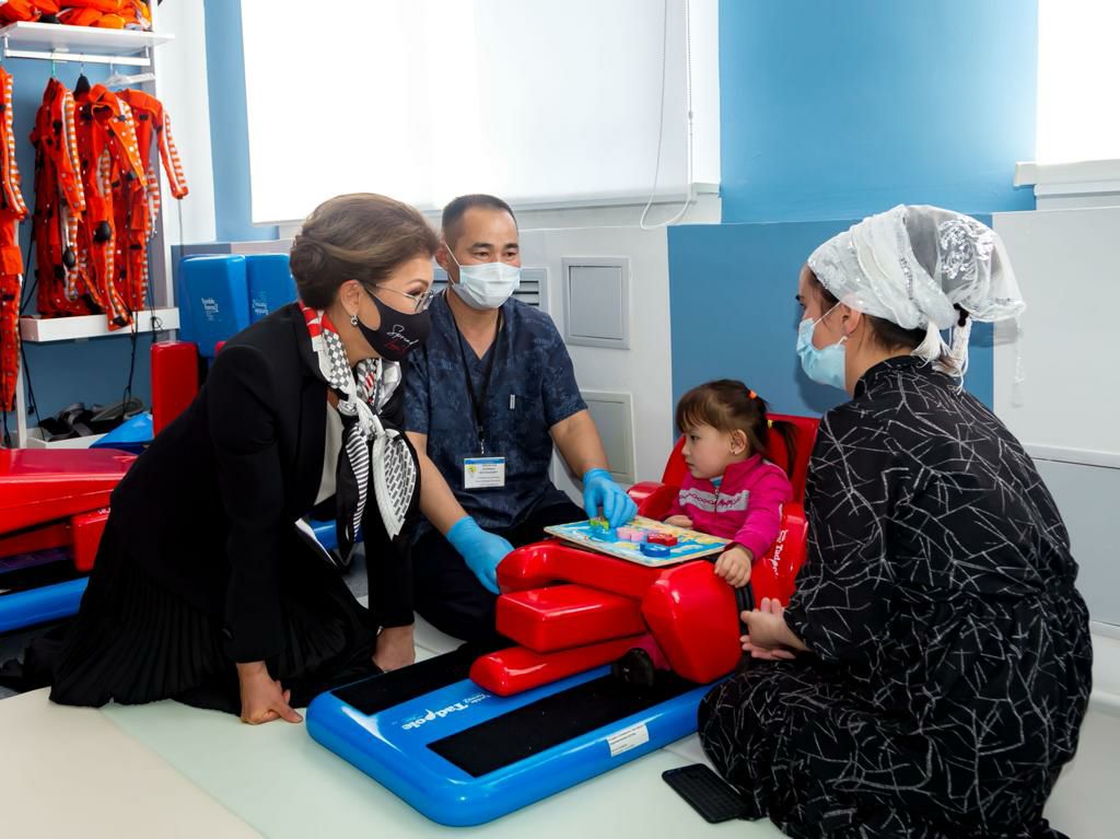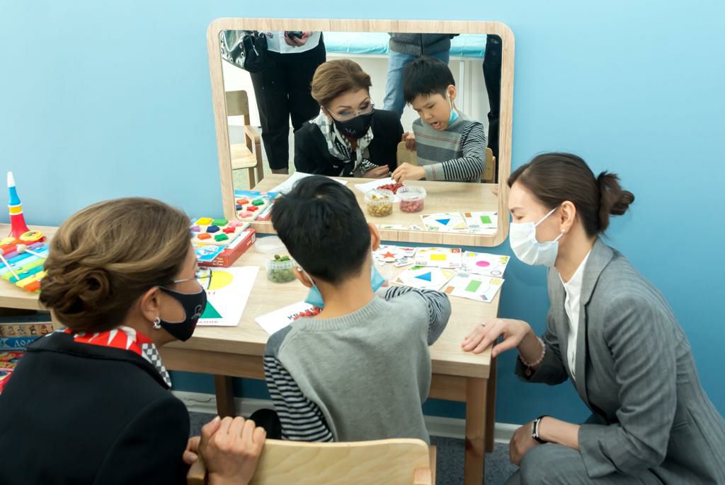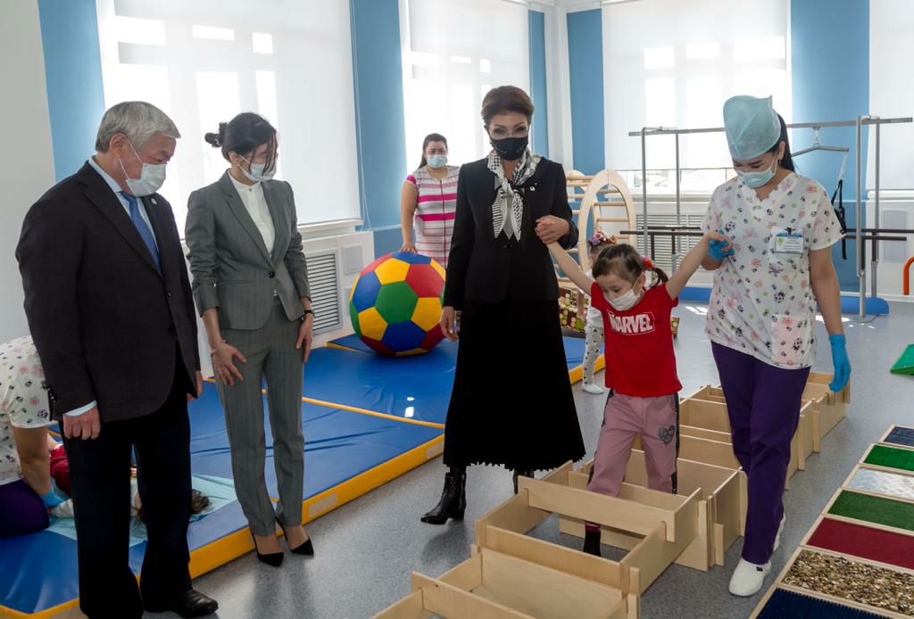 Посещая реабилитационный центр, открытый в декабре 2020 года в рамках реализации инициативы Елбасы «Қамқорлық», Дарига Нурсултановна ознакомилась с его работой, осмотрела кабинеты, пообщалась с родителями и детьми.