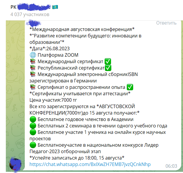 страницах вашего издания. Сейчас, наконец, вводят более гуманные способы аттестации учителей. С разъяснениями выступают представители Министерства просвещения. Но новые правила вступят в силу только через полгода. Сейчас учителя сдают и тест в полном объёме, и портфолио собирают. По-прежнему процветает торговля сертификатами, курсами и публикациями. Вот что предлагают учителям купить для прохождения аттестации в группах WhatsApp и Telegram: