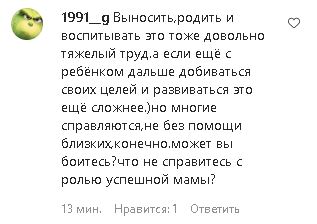 "Выносить, родить и воспитывать — это тоже довольно тяжелый труд. А если еще с ребенком дальше добиваться своих целей и развиваться, это еще сложнее. Но многие справляются, не без помощи близких, конечно. Может вы боитесь, что не справитесь с ролью успешной мамы?" — пишет 1991_g