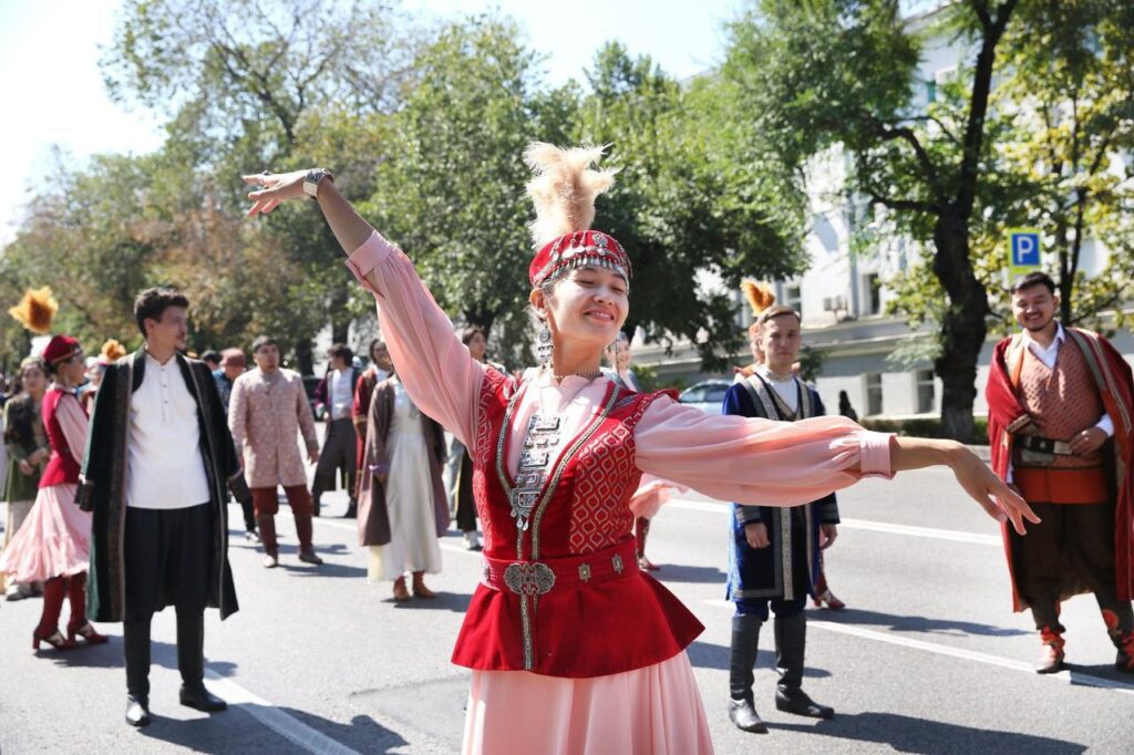 По алматинским улицам пронесли сакральную воду из ущелья Аюсай. Караван единства прошёл по пр. Достык до площади им. Абая. Здесь состоялось театрализованное шоу в честь отправки членов казахстанской сборной из Алматы на Всемирные игры кочевников в Астану. В мероприятии приняли заместители акима Алматы Бейбут Шаханов и Азамат Калдыбеков.