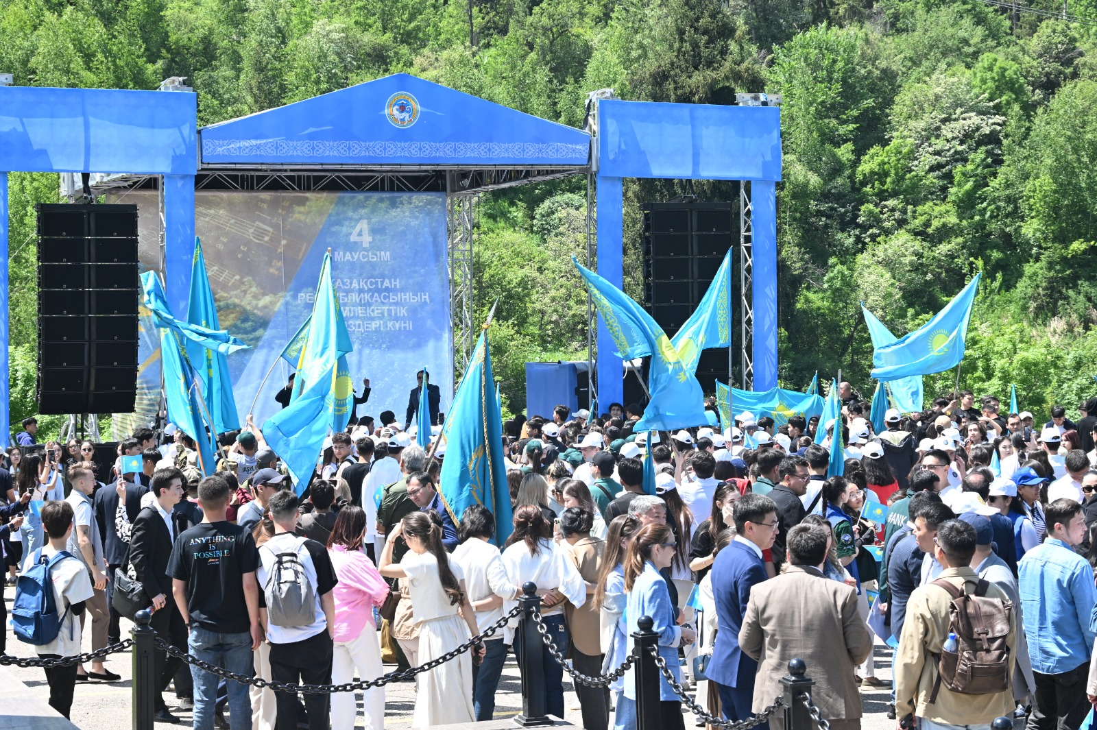 Патриотическое мероприятие состоялось на высокогорном спортивном комплексе «Медеу». В торжественной церемонии приняли участие аким Алматы Ерболат Досаев, деятели культуры и спорта, депутаты маслихата, представители общественности, Ассамблеи народа Казахстана и молодежных организаций. После официальной части празднование Дня государственных символов продолжилось концертной программой. Всего в церемонии участвовали более тысячи человек.