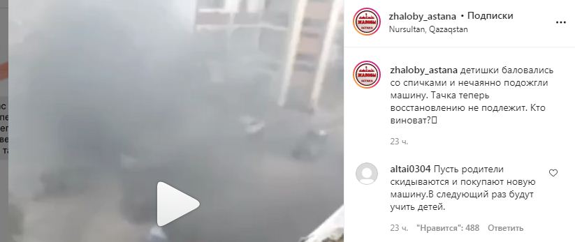 "Дети баловались со спичками и нечаянно подожгли машину", — говорится в описании к опубликованным кадрам.