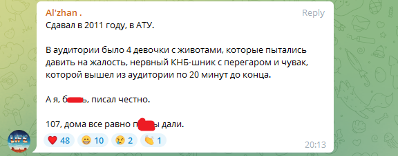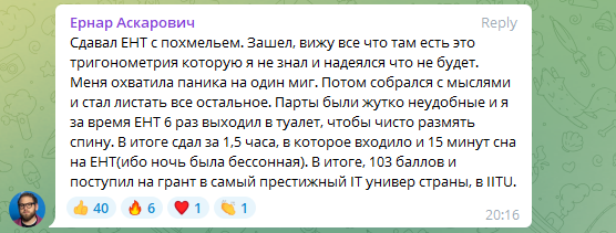 В телеграм-канале qumash попросили пользователей поделиться своими историями о том, как они сдавали ЕНТ, которое в этом году проходит с 16 мая по 5 июля.