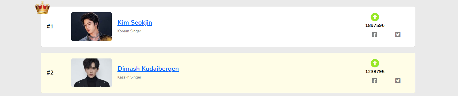 Конкурс продлится до конца сентября. На первое место вышел корейский исполнитель Ким Сокджин с 1 897 596 голосов. На втором месте находится наш соотечественник, певец Димаш Кудайберген. За него отдали 1 238 795 голосов. На третьем месте находится тайский актер Вин Метавин с 935 799 голосами.