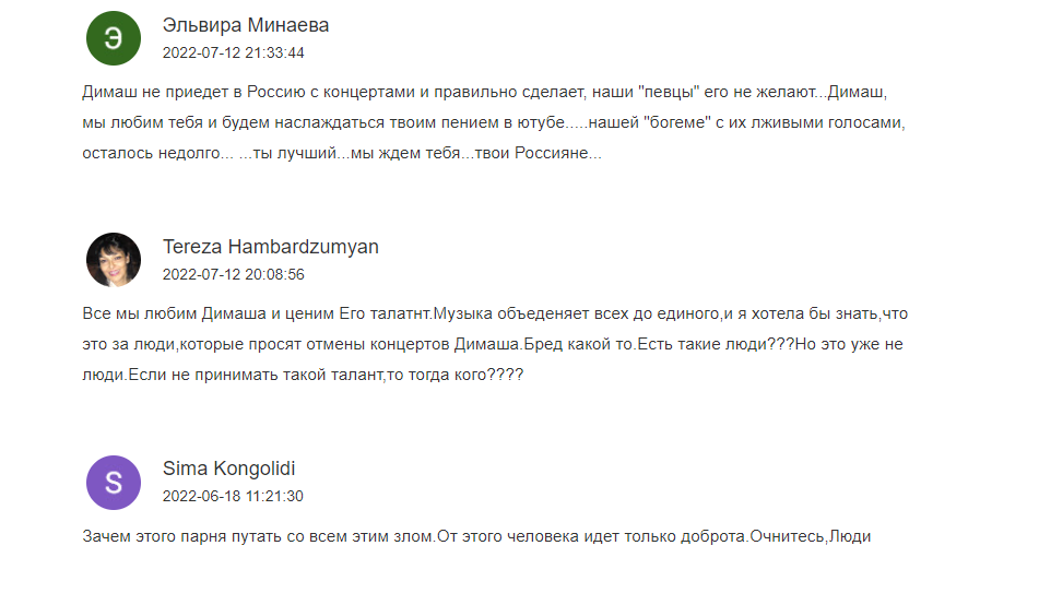 В заключение несколько комментариев из Сети о том, почему Димаш не выступает в России.