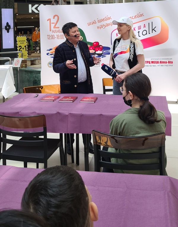 Желающие изучать и совершенствовать казахский язык сидели не за студенческими партами, а за накрытым дастарханом, выполняли задания, составляли диалоги, внимали спикерам. Всё это – в дружественной, расслабленной обстановке, чтобы снять стеснение и барьеры.