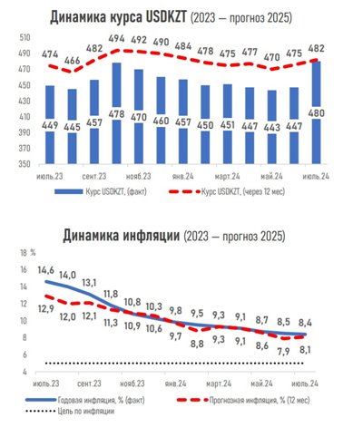 Ожидание скорого начала цикла снижения ставок Федрезервом в совокупности с сокращением добычи нефти странами ОПЕК+ может оказывать поддержку нефтяным котировкам. Через год стоимость барреля Brent прогнозируется на высокой отметке в 84,7 доллара за баррель (в бюджет РК на 2025 г. заложена цена 75$).