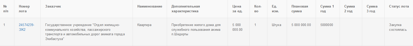 Также чиновники сочли необходимым приобрести трехкомнатный дом площадью минимум 99,8 м² для поселкового акима. Жилье обошлось бюджету в 5 миллионов.