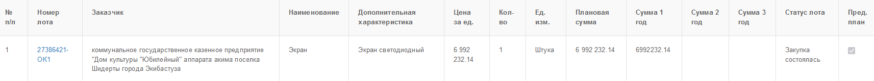 Еще один предмет дорогой техники был приобретен в Дом культуры. Светодиодный экран с рабочим полем не менее 49,2 м2 стоил почти 7 миллионов тенге.