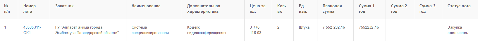 За 3,7 миллиона был куплен комплекс для конференц-связи. В необходимых параметрах устройства указана поддержка 22 языков, включая датский, финский, румынский, шведский и тайский. Казахский язык в список не входит.