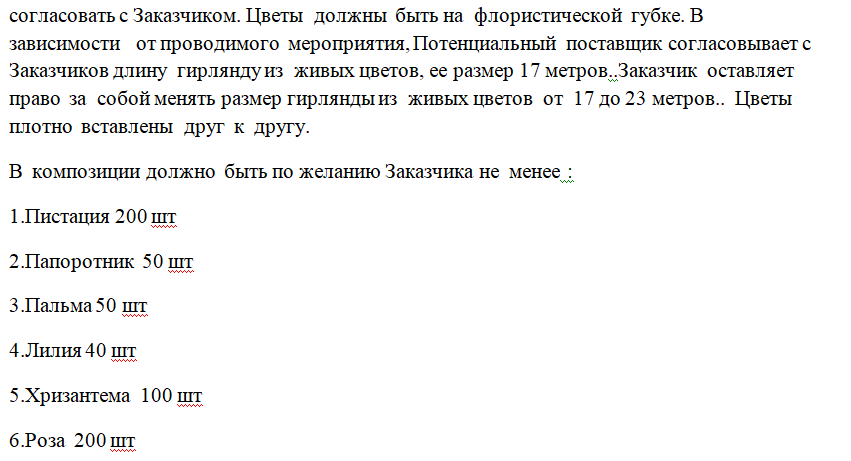 Отдельно отмечается, что у заказчика должна быть возможность лично приехать и выбрать цветы для гирлянды.