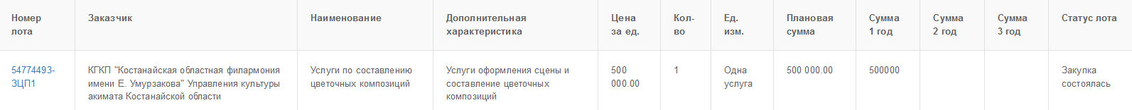 Областная филармония заказала цветочную гирлянду за 500 тысяч тенге.