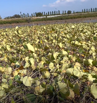 Вот так лотосы выглядели, когда в водоёме была вода: