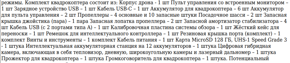 Помимо самого квадрокоптера, пульта управления и зарядного устройства в комплекте должны прилагаться шесть аккумуляторов для квадрокоптера, 10 запасных пропеллеров, флешка на 128 гигабайт, жесткий кейс для переноски, комплект инструментов, цифровая гибридная камера с тепловизором и так далее.