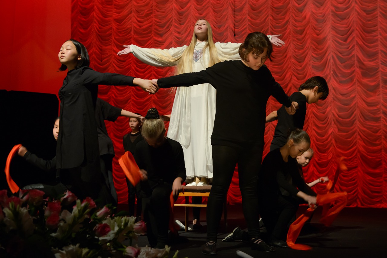 В рамках концертной программы на сцене легендарного театра состоялось грандиозное выступление воспитанников детской театральной студии «Sats ComUnity» — школы профессионального актерского мастерства, вокала, ораторского искусства и современных танцев для детей, созданной на бесплатной основе при театре им. Наталии Сац. Воспитанники студии показали пластическую композицию в честь чествования христианских святых, почитаемых в лике мучениц Веры, Надежды, Любови и Софии.