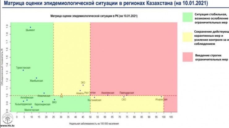 В "желтой" зоне: Нур-Султан, Алматы, Атырауская, Западно-Казахстанская, Северо-Казахстанская, Костанайская области.