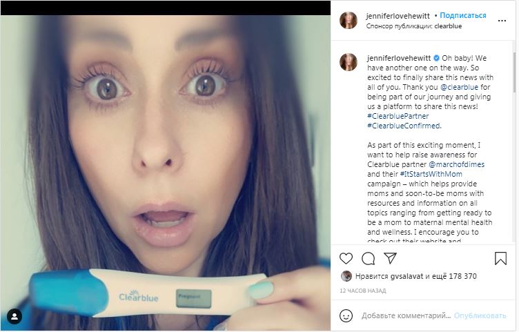 «Я подумала, что это так грубо! Я ведь только что поужинала, — вспоминает Дженнифер. — Но его слова засели у меня в голове. Они с сестрой просили родить им братика или сестричку уже около года. И мы с мужем много думали над этим. Вскоре после этого актриса купила тест, и он оказался положительным».