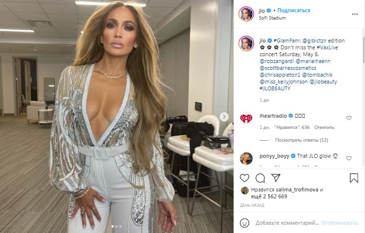 Популярная американская исполнительница Дженнифер Лопес выступила на благотворительном концерте в поддержку вакцинации от коронавируса Global Citizen: Vax Live, шоу состоялось на стадионе SoFi в Инглвуде, штат Калифорния, сообщает korrespondent.net со ссылкой на ETonline.